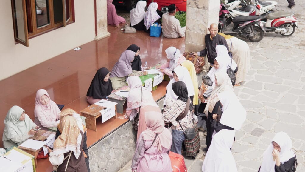 - Sesi Pertama (Santri Putri): Dilaksanakan pada pagi hari, mulai pukul 08:00 WIB hingga 12:00 WIB.